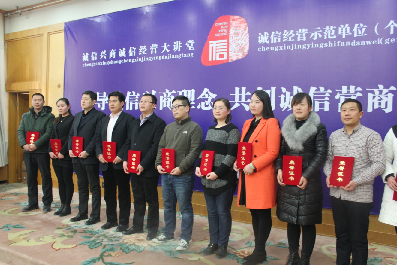 1月15日,第三屆河南省誠信興商誠信經營大講堂暨誠信經營示范企業(個人)表彰在省人民會堂舉行,河南省商務廳等18個廳局的相關領導出席了此次會議。大方公司董事長曹相學被授予河南省誠信之星榮譽稱號,同時大方公司被評為河南省誠信經營示范企業。屆時,大方公司作為誠信經營示范企業將在鄭州、洛陽等省內十大城市進行年度巡展。