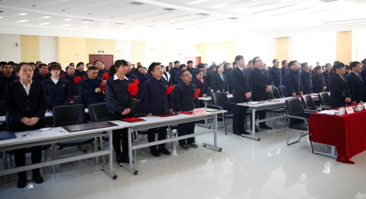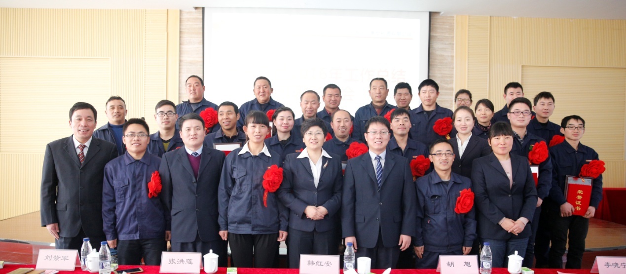 隨后,大方重機副總經理劉紫軍宣讀了《關于表彰2016年度先進集體、先進員工的決定》、《關于表彰2016年度全員營銷、QC、精益管理的先進集體和先進員工的決定》、《關于表彰ME400+400T項目特殊貢獻人員的決定》。會上,副總經理李曉寧為2016年QC小組優秀推進者(李飛、劉永朋、李慶峰、張賀棟、趙朋沖、張志兵)、在800t龍門制作過程中做出特殊貢獻的人員(肖太強、孫國慶、趙軍、劉國奇、姚志華)頒發榮譽證書;技術總工馮彥寧為2016年精益管理優秀推進者(潘衛成、喬春紅)、優秀QC小組(劉永朋代表領獎)頒發榮譽證書;副總經理劉紫軍為2016年全員營銷明星(任小靜、吳永攀、劉輝)、2016年四季度全員營銷標兵(張衛東、王倉永、梁梅)頒發榮譽證書;總經理胡旭為2016年受表彰的先進工作者(楊豪、徐書品、喬琨璽、袁進民、楊軍田、李欣雨、彭增申、王喜芳、劉震鋒、曹慶濤、姬憲旺、杜秀強、盧巖、王冰、王艷利)、2016年受表彰的先進部門和先進班組頒發榮譽證書及獎牌;董事長張洪蓮為公司勞模(宗申、肖彥青、謝秀玲)、董事長提名獎(肖太強、周???、劉尚釗)獲得者頒發獎牌及榮譽證書。公司勞模代表肖彥青、先進個人代表李欣雨、先進部門代表高東瑞分別發言。